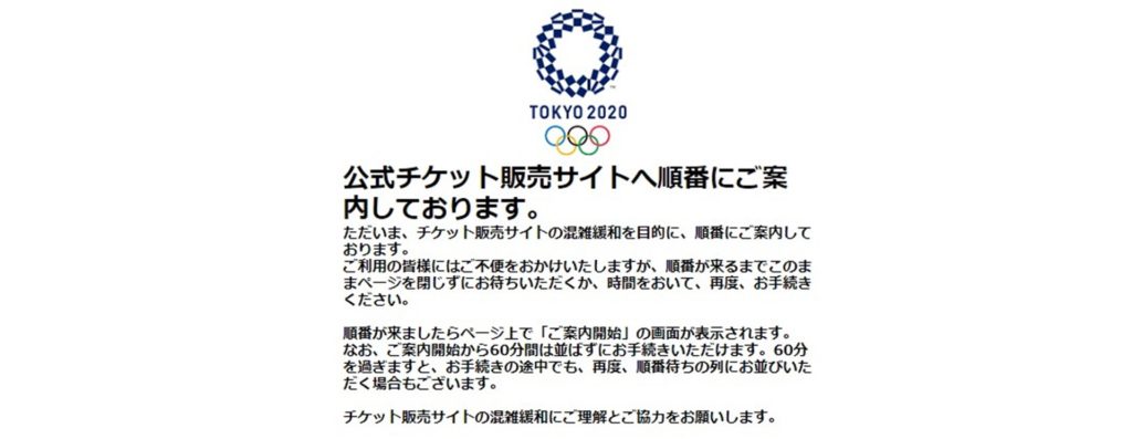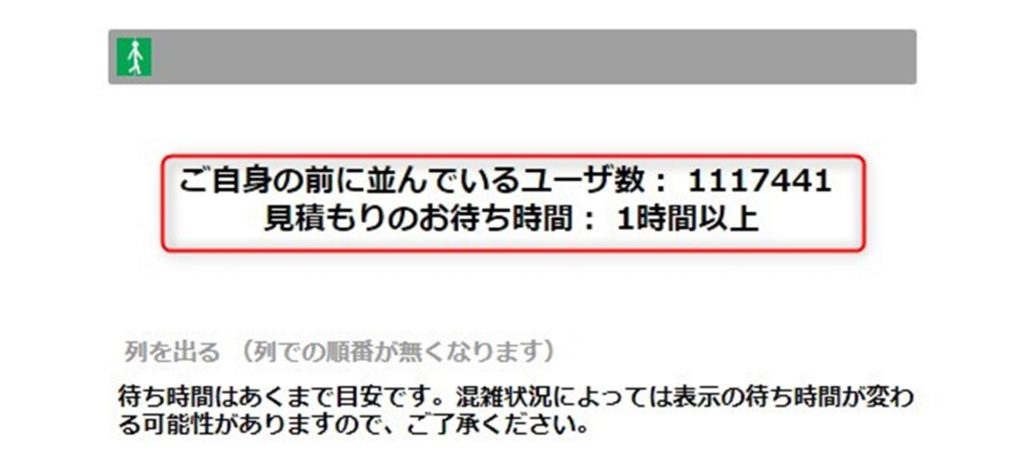 公式販売ページが混雑している場合は下記画像のように順番待ちが表示されるため時間に余裕をもってサイトにアクセスして確認を!